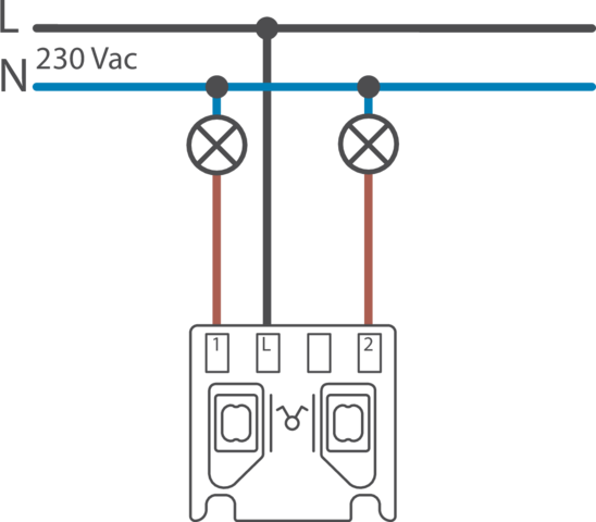 Podwójny przełącznik, 71 x 71 mm z zaciskami wtykowymi, podstawą i zes